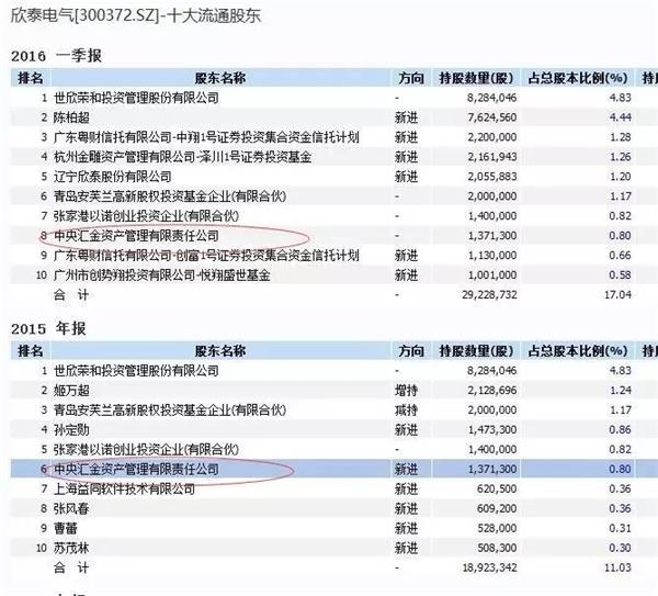 2016年一季度的前十大流通股東,國家隊中央?yún)R金赫然在列,持有137.13萬股,占流通股比例1.52%。具體來看,匯金是于去年三季度大幅買入欣泰電氣,進入到該公司前十大流通股東中,而截至今年一季報,數(shù)據(jù)顯示中央?yún)R金股災(zāi)期間增持的股份并未減持。