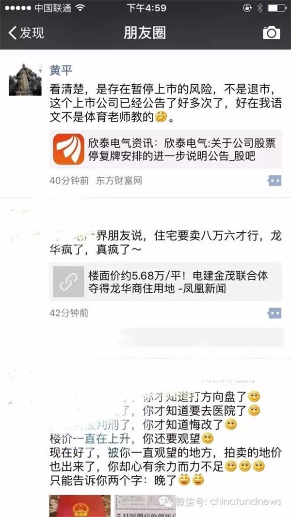 作為2013年、2014年的冠軍私募,廣州創(chuàng)勢翔同志們表現(xiàn)得很是淡定??梢钥聪庐?dāng)時投資總監(jiān)黃平的朋友圈。