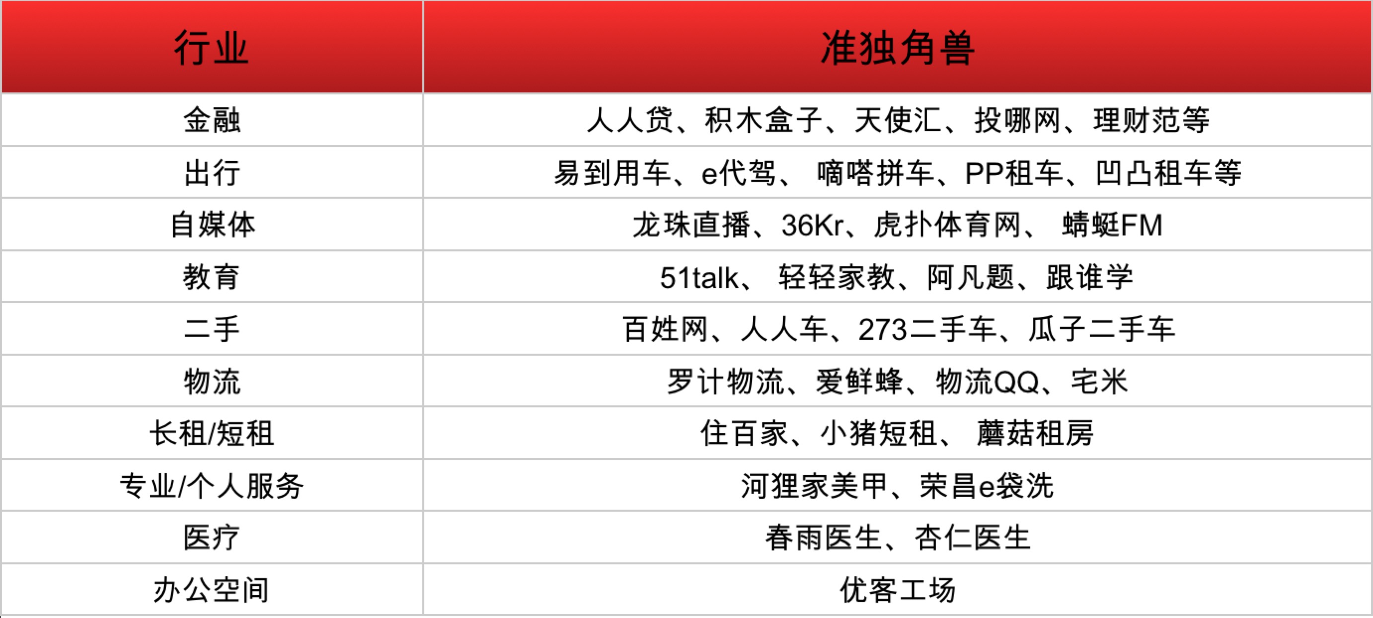 我國分享經(jīng)濟(jì)獨(dú)角獸企業(yè)超過16家,覆蓋P2P金融、出行、教育、專業(yè)服務(wù)、醫(yī)療、自媒體、物流、短租的八大行業(yè)。