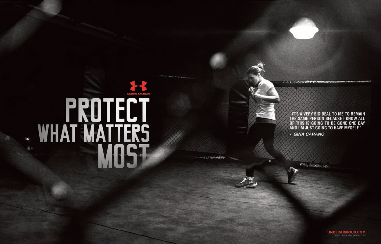 在UA最新的一則廣告中,有一句廣告語:“You are what you repeatedly do when things get hard”。UA一以貫之地強調運動精神、拼搏精神,熱愛運動的年輕人馬上燃了起來。所以當你在健身房、室外場所持之以恒堅持鍛煉時,你需要什么?顯然是專業(yè)的運動裝備,例如能保持干燥的UA緊身衣,以及舒適而充滿技術含量的UA運動鞋。