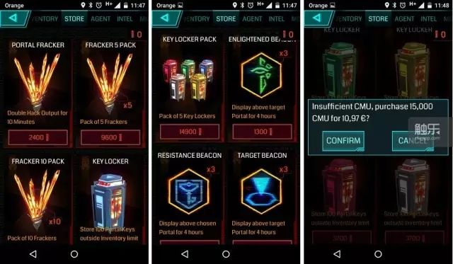 《Ingress》目前的游戲內(nèi)收費點大致分三種,Key桶,F(xiàn)racker(薯條),以及Beacon。Key桶是一次性消費,不可重復(fù);Fracker和Beacon的意義都不大,對單個玩家來說幾乎完全沒用,游戲里也幾乎看不到有人用。綜合來看,游戲里的商店根本就不賣什么東西,更別提收入了。我敢和John Hanke(Niantic的CEO)打賭,給他十個膽子他也不敢公布《Ingress》的每月流水——那可能連國產(chǎn)手游的首時流水都不如。
