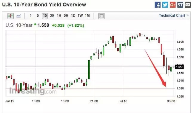 美國10年期國債收益率下跌4個(gè)基點(diǎn)至1.55%。
