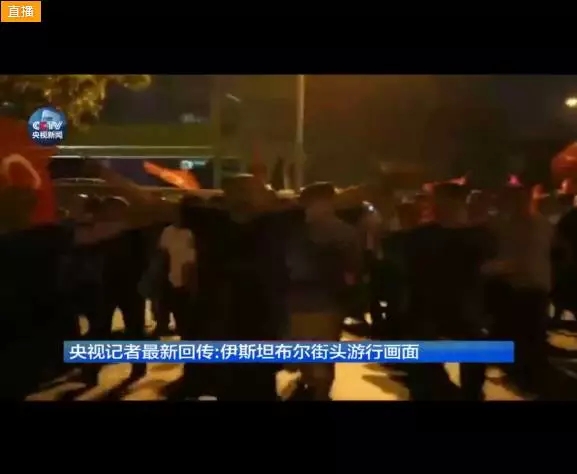 央視記者看到,伊斯坦布爾大批民眾走上街頭,在市區(qū)街道聚集高喊口號。