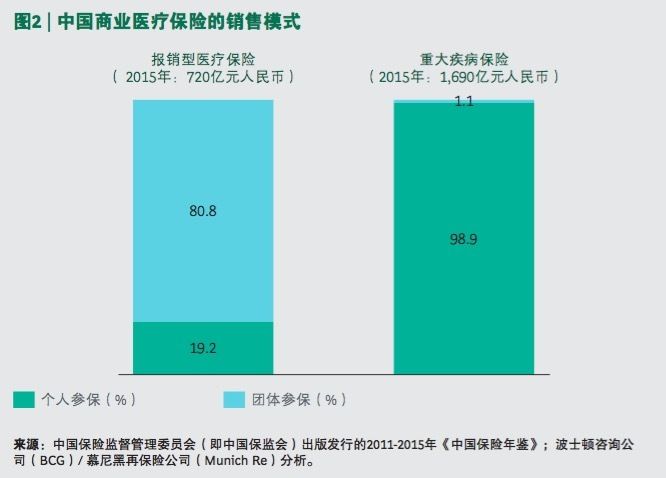 在中國,大多數(shù)報(bào)銷型醫(yī)療保險(xiǎn)的參保者都是通過其工作單位,以團(tuán)體保險(xiǎn)的形式參保。而未來報(bào)銷型的團(tuán)體市場還有可能繼續(xù)增長,增長的團(tuán)險(xiǎn)業(yè)務(wù)將會(huì)更多來自本土企業(yè)和中小型企業(yè)。