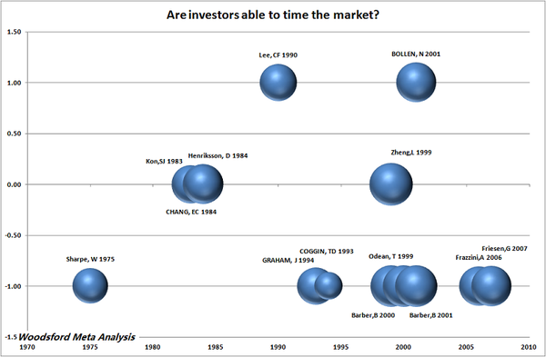現(xiàn)在,讓我們來將學術界做過的研究綜合起來,分析一下到底投資者擇時而動的能力有多少。
