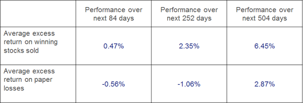 Source: Odean,T: Are investors reluctant to realize their loss? Journal of Finance, Oct 1998 (53)