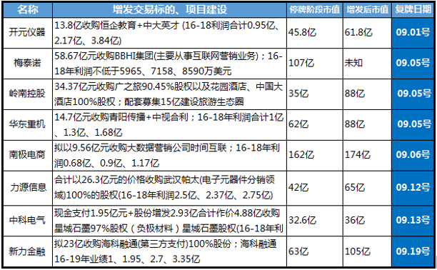 9月份定增復(fù)牌篩選標(biāo)的