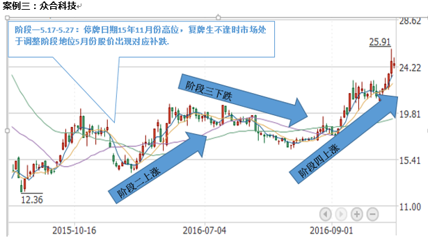 4.定增復(fù)牌出來處于市場(chǎng)震蕩階段,短期未有表現(xiàn),中期1-2個(gè)月走出震蕩上揚(yáng)(績(jī)優(yōu)、公司不屬于小市值殼資源公司,所處行業(yè)景氣、有業(yè)績(jī)支撐)俗稱白馬/績(jī)優(yōu)定增,16年成功案例:4月份復(fù)牌的(凱樂科技、中天科技、亨通光電、聯(lián)創(chuàng)光電)