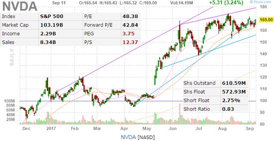 NVDA于8月10日發(fā)布的第二財(cái)季財(cái)報(bào)顯示,每股收益1.01美元,好于預(yù)期值0.82美元;營收同比增56.2%至22.3億美元,好于預(yù)期值19.6億美元。