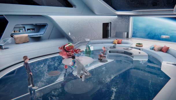 就像第二人生這類游戲,你在里面可以創(chuàng)建一個(gè)自己的化身,可以參與各種活動(dòng)?;蛳裨瞬褚粯油ㄟ^(guò)VR設(shè)備在元宇宙中開(kāi)會(huì)。