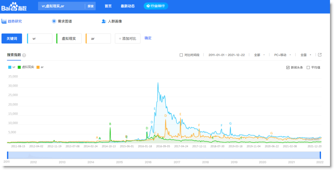 當(dāng)前的我們已經(jīng)可以從VR等相關(guān)關(guān)鍵詞在百度搜索指數(shù)的起伏中開啟馬后炮視角:再先進(jìn)的技術(shù)在缺乏落地基礎(chǔ)的時(shí)候,早期的熱情可能只是資本推波助瀾下的概念與營(yíng)銷而已。