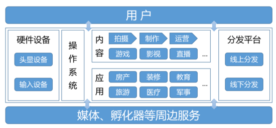 硬件設(shè)備、操作系統(tǒng)、內(nèi)容、應(yīng)用、分發(fā)平臺構(gòu)成了VR產(chǎn)業(yè)鏈的核心環(huán)節(jié)。我們將基于這五大環(huán)節(jié)對VR產(chǎn)業(yè)鏈進行拆解。